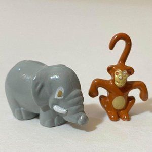 - Comes with elephant and monkey figures (the elephant has a small stain on one side and a little paint loss from the top of its back and the monkey has a little paint loss as well)