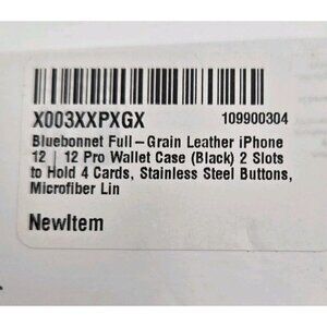 The Bluebonnet Full Grain Leather Case is designed specifically for Apple iPhone 12 and 12 Pro models, featuring a folio case design with two slots for cards and one slot for cash. Made from high-quality leather, this case offers both style and functionality to protect your phone and essentials. The brand, Bluebonnet, ensures a durable and stylish accessory for your smartphone. Open Box with some damage to the box, but not the case itself. Please see photos. Fast shipping and smoke-free environment.