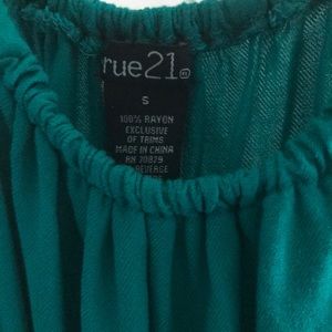 It’s a cute light flowy short romper. It’s an aqua green color and has elastic at the waist