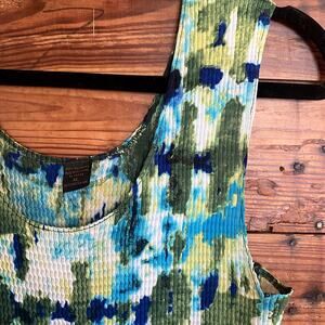Blue/green textured tank top