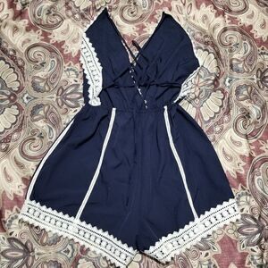 Blue lace romper size medium. No brand. Boutique item. New without tags.