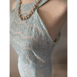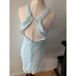 Beautiful light blue dress I would say it’s on the see-through side so it would be perfect for a beach wearing a bikini Bin A307