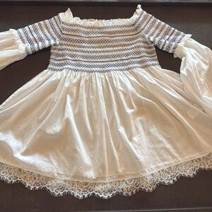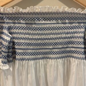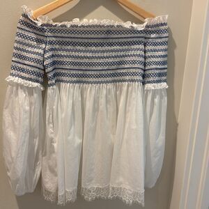 Bluemarine Offshoulder Smocked Broidered Blouse white and Blue size 8