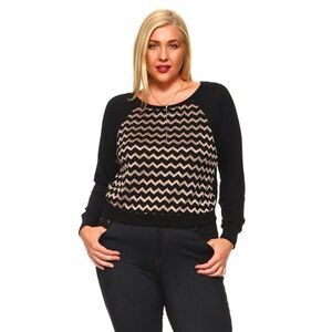 Bluenotes Cropped Sweater Top With Metallic Jagged Lines - Gold Black