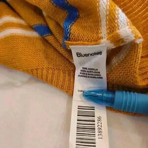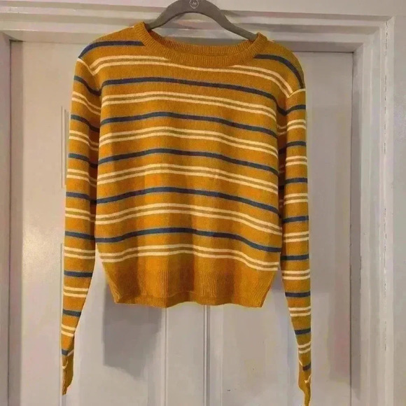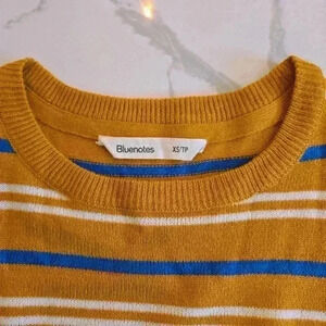 Lightweight Sweater with blue & white stripes with a mustard yellow background