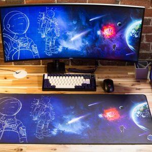 The spacesuit was one of the greatest and most epic inventions of all time. I wanted to show just how truly amazing it is with the actual NASA blueprint on the left side of the deskpad and the guy in the spacesuit gazing at the earth in awe on the right side. Those who have had the opportunity to do it, I guarantee you they would describe it as epic.