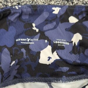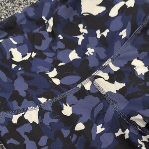 Stylish blue camouflage leggings with a high waist. Perfect for workouts or casual wear.