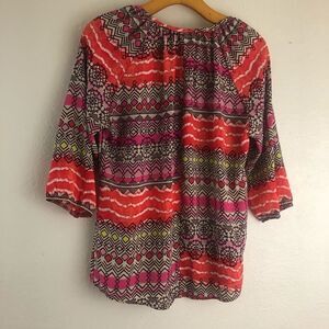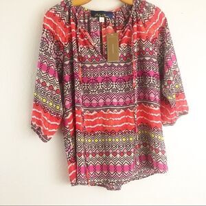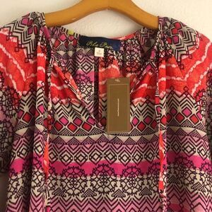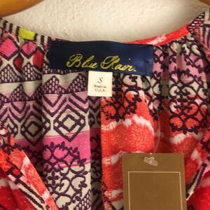 Blue rain printed orange 3/4 sleeves tie front blouse size S. New with tags 3187