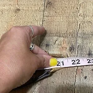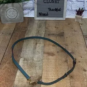 Blue replacement strap Gold hardware Approx measurements in pics Excellent condition Unsure if it’s saffiano leather or faux leather please view photos