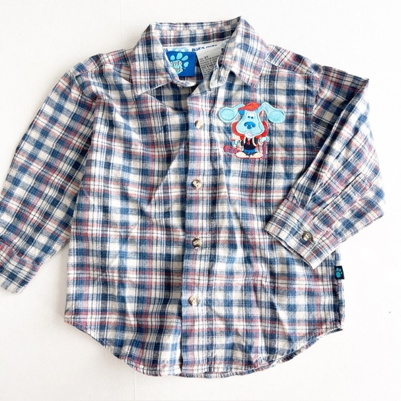 Blues Clues Y2K Boys Button Down Shirt Vintage Top Plaid Dog kids child