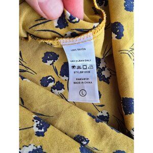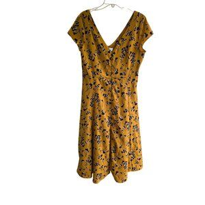 Blues &Greys Mustard Yellow Floral Print V-Neck Midi Dress L