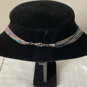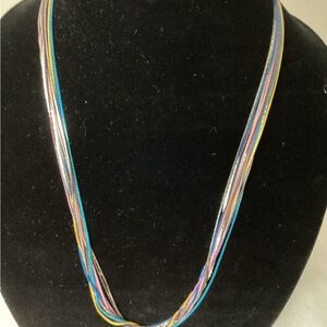This necklace features a captivating blend of blue and purple hues, crafted in a sculptural design that elegantly drapes around the neck.