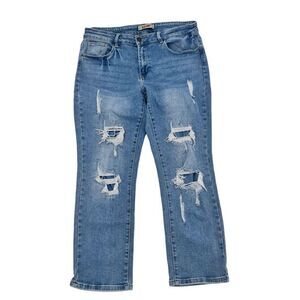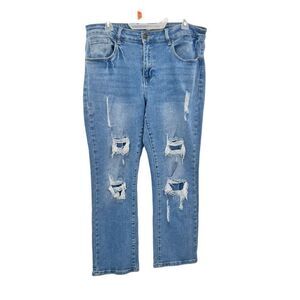 Blue savvy distressed boyfriend jeans In Excellent condition size 16