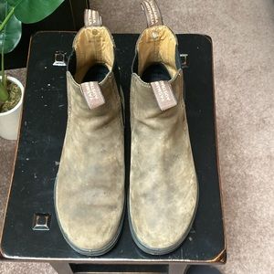 Lightly broken in uppers, excellent soles; clean; Suede, rustic brown. Great, lightly used blundstones! (My feet are just too big for these!).