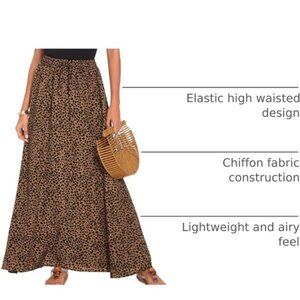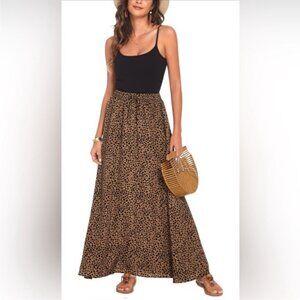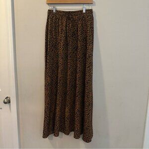 Bluetime Leopard Print Maxi Skirt Brown Tan Flowy Boho Chic Size Medium