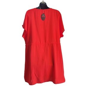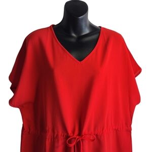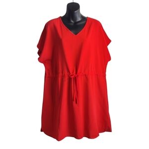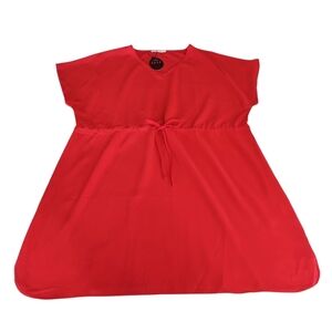 Bluetime Women's Red Casual Swim Cover Up V-Neck Tie Waist Dress Size L NWT