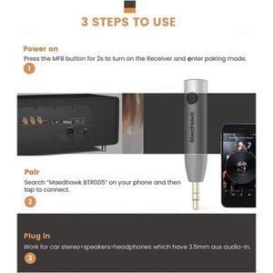 🧿✔️【MINI SIZE - POWERFUL ENERGY】This Bluetooth AUX receiver its designed with aluminum slim body, comes with 3.5mm AUX Jack, get rid of the tangle cables. Enjoy wireless music for 5 hours battery life with one charging for 1.5 hours.