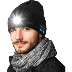 Bluetooth Beanie with Light, LED Beanie with Built-in Speaker and Microphone, Un