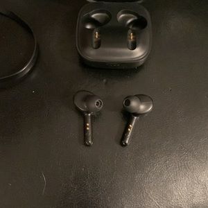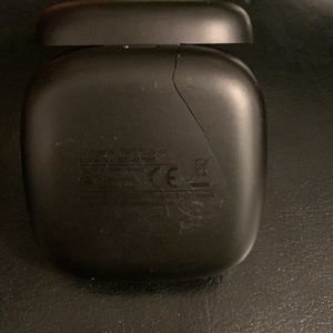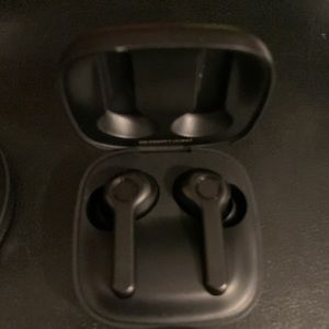 Black blotune bluetooth earbuds. I got these a couple years ago and they still work as if brand new. There is a small crack in the case that does not have any effect on the charging. It does come with the charging cord.