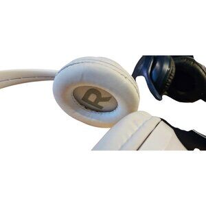 Polaroid headphones show noticeable wear on ear cushions with peeling and cracks. Hypergear headphones in better condition.