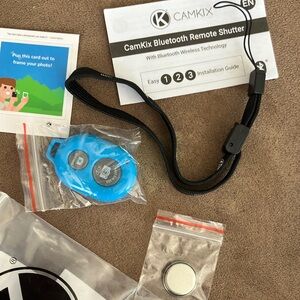 CamKix Bluetooth Remote Shutter in black. Compact and easy to use. This camera shutter remote control will allow you to take pictures or record videos with your phone tablet using Bluetooth wireless technology. You will only need to pair the remote with your device once. Then you can have lots of fun with it! To pair it and use it follow three simple steps.