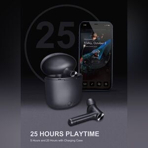 ♪【20Hrs Play Time with Portable Charging Case】- The charging case holds roughly 4 full charges and each charge works for roughly 5 hours. About 1-hour charging you can make the earbuds battery from died to full charge, and only 2 hours for charging case.