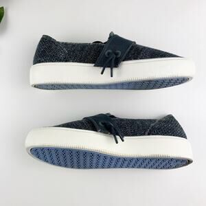 Blueview Pacific casual sneaker style shoes in women’s size 6.5. Breathable, grey knit upper with removable, organic cotton strap. 100% biodegradable and made with plant based materials. Soleic technology. Durable and comfortable. Light wear.