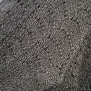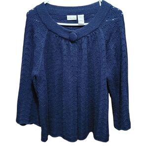 Beautiful navy scalloped stitch wide sleeve scoop neck cardigan with a single button at neckline excellent pre-owned condition I don't think it's been worn no damage pilling or pulls