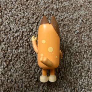 Cute collectible figure of Bandit-style cartoon dog. Bright orange body with cream face and paws. Compact and playful pose. Great for display or play. Has marks shown in above picture.