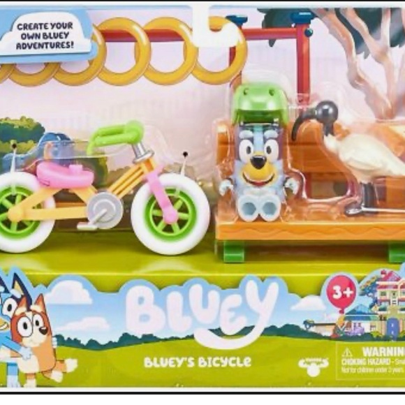 Bluey and her bike visit the park. Item is very used but in good working condition. Will have scuff marks, wear, and/or scratches. First photo is for reference only.