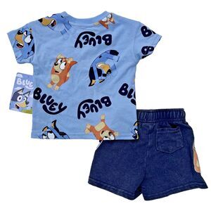 Bluey Bingo Two Piece Set Short Sleeve Shirt and Shorts Clear Sky Size 12M NWT