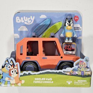 Brand new in box — includes figure set Bluey & Family plus Heeler 4WD Vehicle + accessories (surfboards).