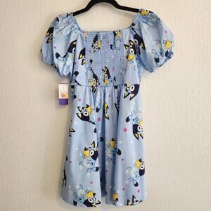 Bluey Girl's Size 14/XL Light Blue Character Print Puff Short Sleeve Dress NWT