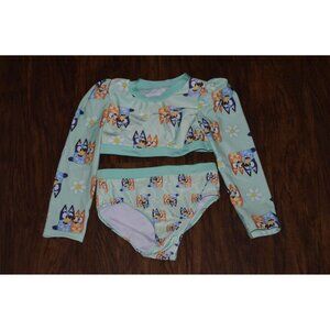 Bluey Girls Sz 3T Two Piece Swimsuit Toddler Long Sleeve Bikini Cartoon Bathing