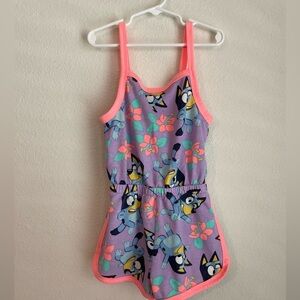 Bluey Girls purple and coral neon shorts romper with tropical flower print S6/6X
