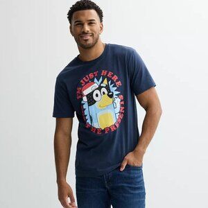 Bluey I'm Just Here For The Presents Navy Men's Graphic Crewneck Short Sleeve T-Shirt Size Large