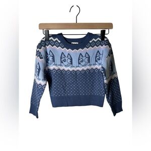 Bluey Kids Sweater Pullover Knit Fair Isle Jumper XS 4/5 Blue