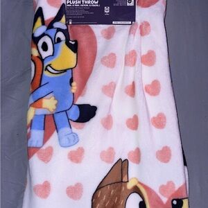Soft and cozy Bluey plush throw. Features Bluey and Bingo design. Perfect for kids' rooms.