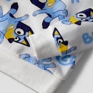 This adorable Bluey Toddler Sweatshirt is perfect for your little one's wardrobe. Made from a comfortable cotton blend material, this long sleeve sweatshirt features a solid pattern in a vibrant all over bluey print that your child will love. The sweatshirt is perfect addition to any Bluey fan's collection