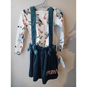 Bluey Toddler Girls Size 3T Green Velvet Christmas Dress "Merry" 2pc Jumper Set