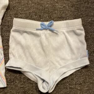 Cute little drawstring waist shorts and a short sleeve tee, ribbed material.