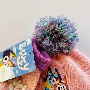 Bluey | Toddler Mitten Winter Hat Knit Fleece Ear Flap Pom Pom NWT