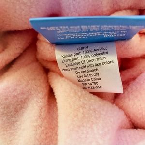 Knit hat with fleece lining. It has ear flaps without strings. This is a toddler sized hat and would fit 12 months to 2T/3T.