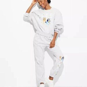 Bluey Women's Sweatshirt XXS Gray Flowers Graphic Pullover Fleece Long Sleeve
