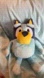 This is a smaller Bluey soft toy that sings. He doesn’t move, but he does say different phrases. Please look at all pics where I took pictures of where he needs a little cleaning. Overall good shape!