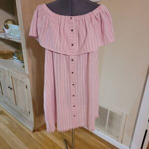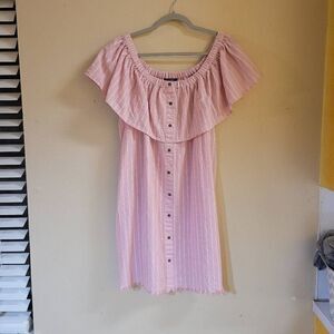 Bluheaven Women's Elastic Off-shoulder Striped Dress Barbie Pink Large