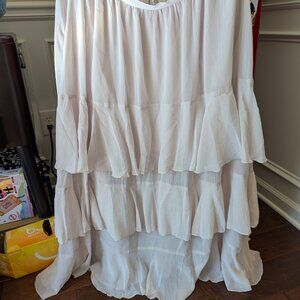 Brand new Bluivy skirt with tags. Pale pink/peach color. Cover shot is from the boutique I bought from. Is a bit wrinkled from shipping nothing a good steam won't fix. Had elastic in back part of band to give a little stretch.