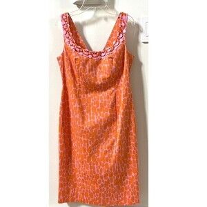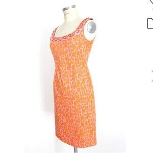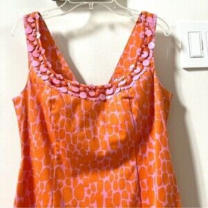 Blumarine 2000s dress. Orange and pink sheath dress with spotted pattern. Sequined applications on the chest.
