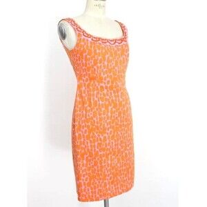 Blumarine Orange and Pink Spotted Sequin Embellished Sheath Dress S