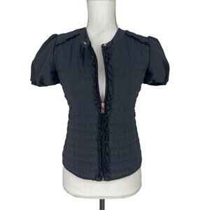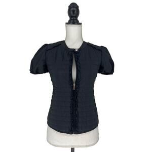 Blumarine Ruffle Quilted Short Sleeve Jacket in Black